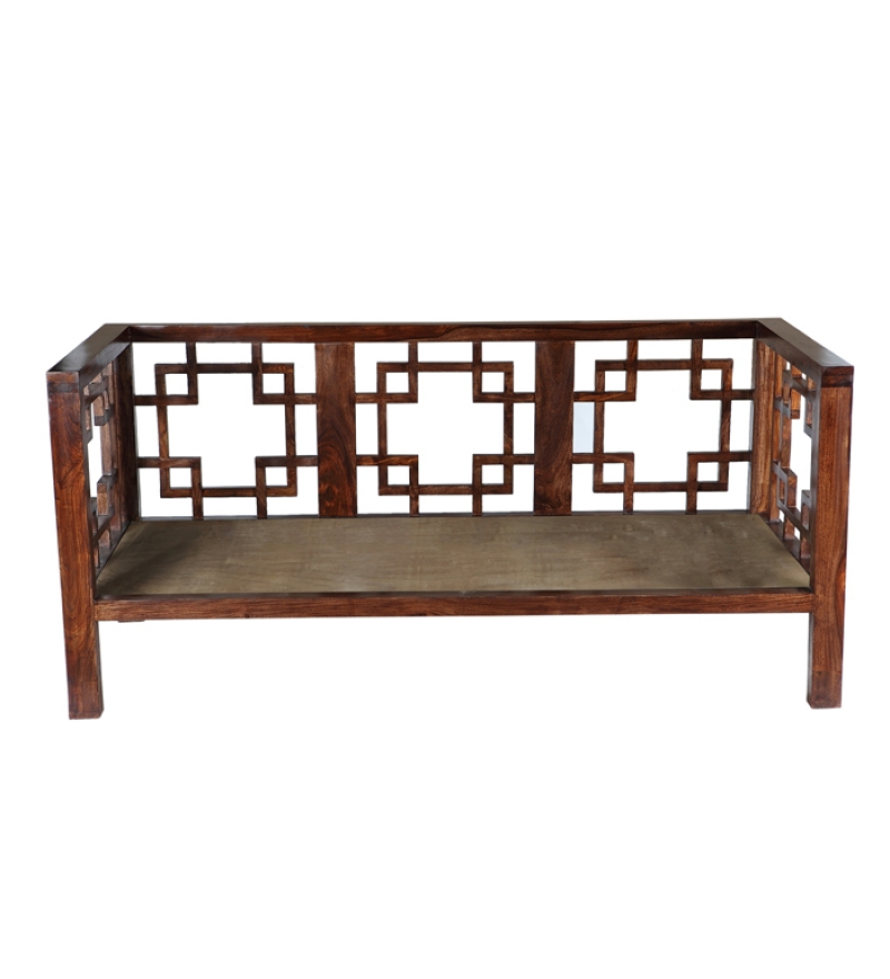 A perfect blend of low seating arrangement with a crafted design. This 3 seater sofa not only occupies less space but looks elegant. Designed to perfection.