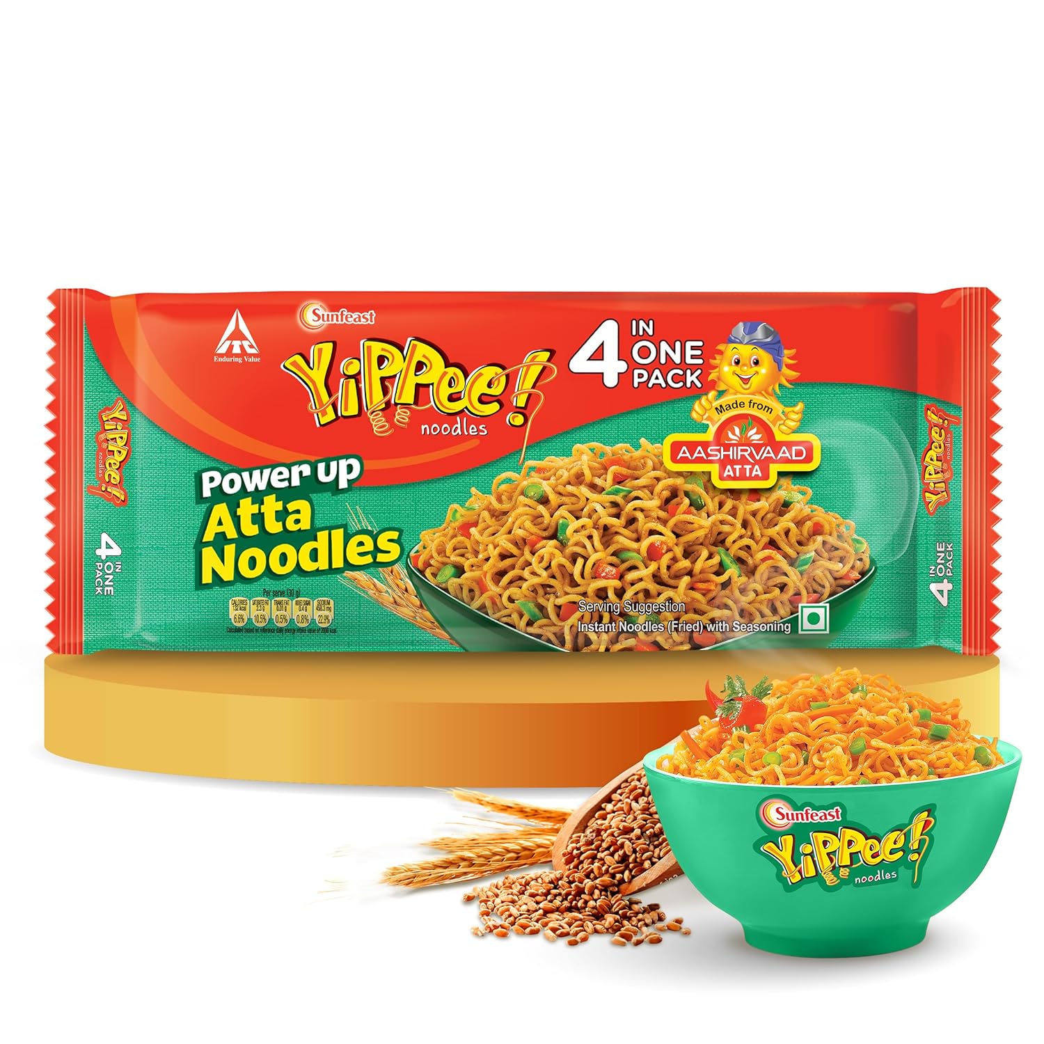 MADE WITH AASHIRVAAD ATTA: The goodness of Aashirvaad atta in your favourite long, non-sticky & slurpy YiPPee! Noodles