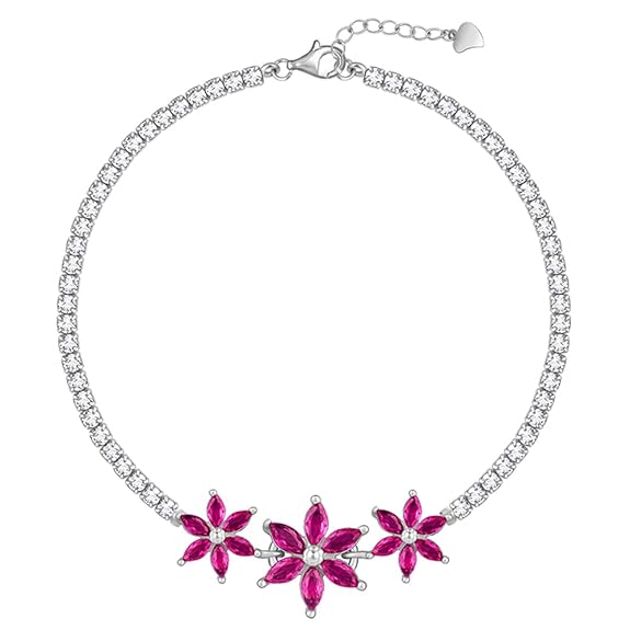 GIVA 925 Silver Pink Floral Tennis Bracelet at 2375